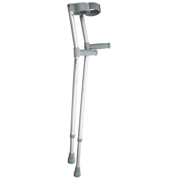Forearm crutches help reduce the discomfort from daily use by disturbing the user’s weight on the arms. Daily user comfort is increased with contoured hand grips that reduce pressure on the hands and arms during use. In addition to the handgrips, the crutches include rubber tips to improve traction and prevent slipping during indoor and outdoor use.