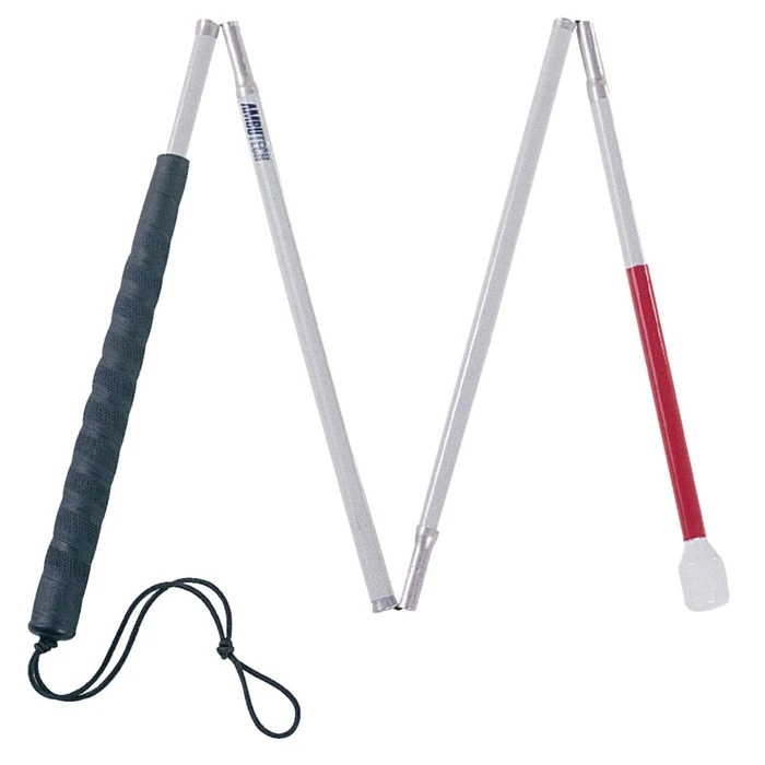 The Folding Mobility Cane is ideal for those with low vision, or for the blind. It is an easy-folding cane made of heavy-walled aluminum, and has a rubber grip that is flat on one side for comfort and control. The extra-long joints increase rigidity, and each section is covered with either white or…