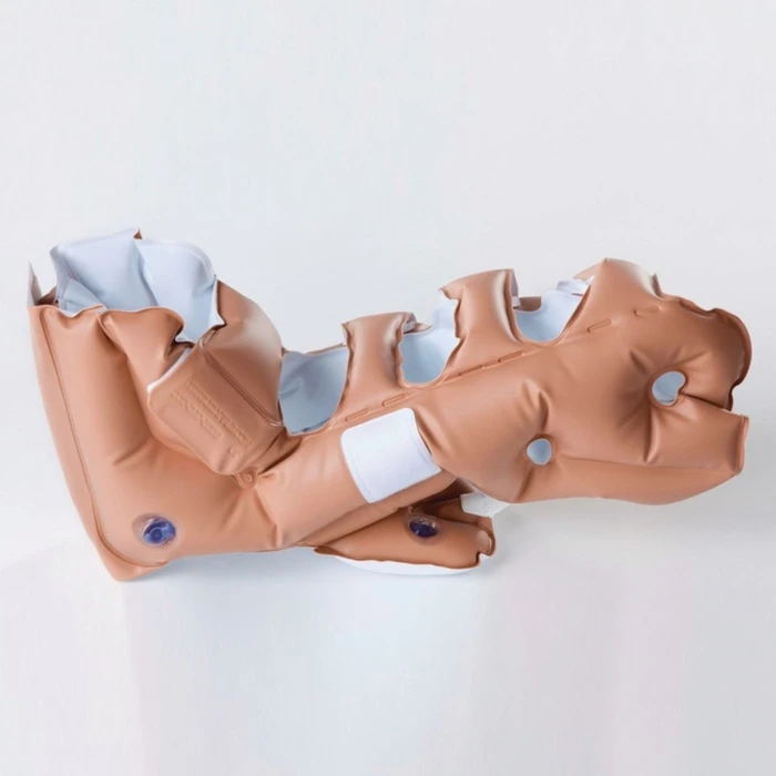 - The waterproof vinyl exterior has air venting holes and cotton lining to keep the patient cool, dry and comfortable