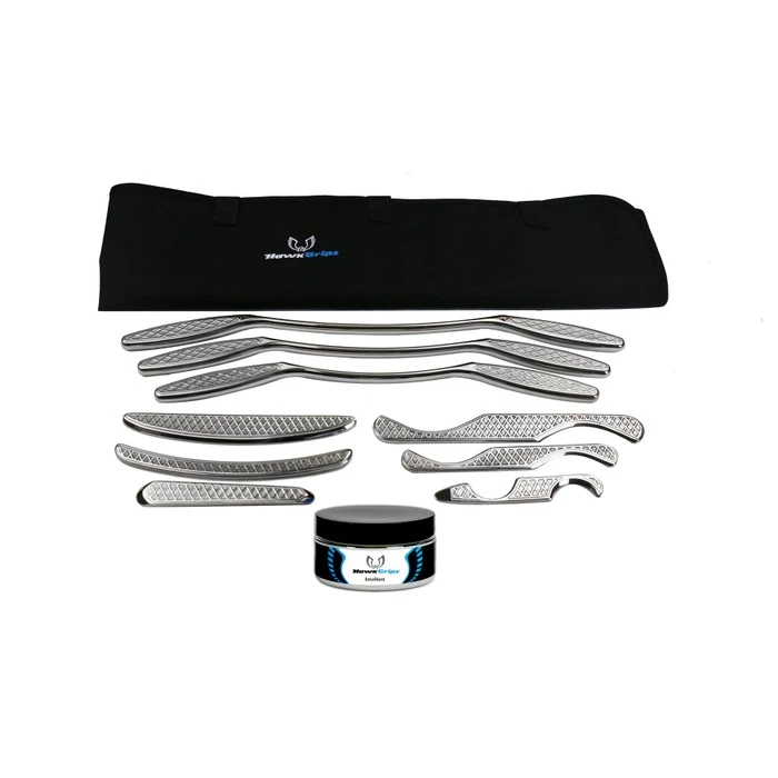 Platinum Set includes nine instruments, providing the most options for the user. (HG1-HG9), roll-up carrying case, shoulder bag, one jar of regular emollient, and User Manual.