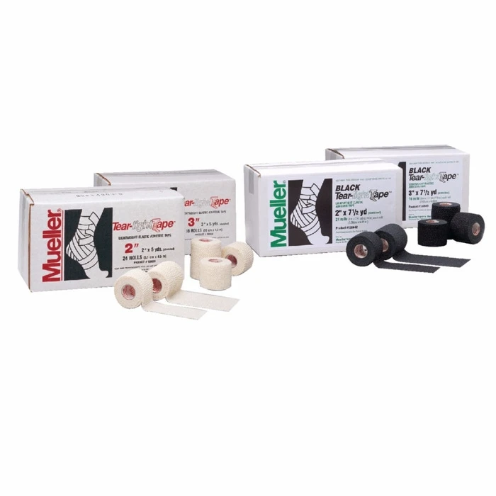 Mueller Tear-Light Tape is lightweight, elastic, easy-to-tear adhesive tape. It offers the conformability necessary for securing lateral knee braces, compression wraps and fixation bandaging for padding and cold packs. The tape is also ideal for spatting to help secure cleats and cover…