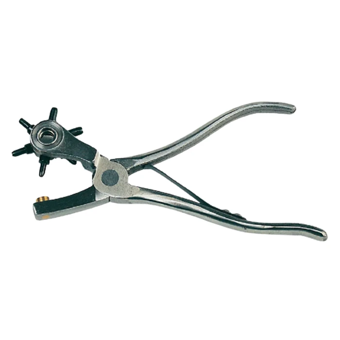 Forged-steel punch is ideal for making holes in splinting material, leather and webbing. Six rotating tubes, threaded for easy replacement, range in size from 3/32″ to 3/16″. Latex free.